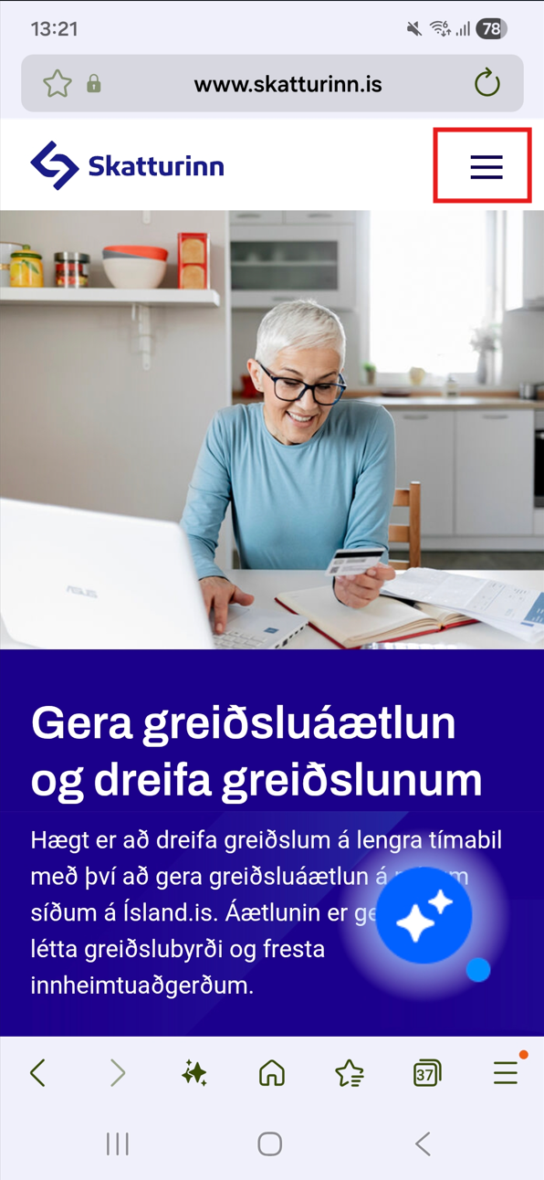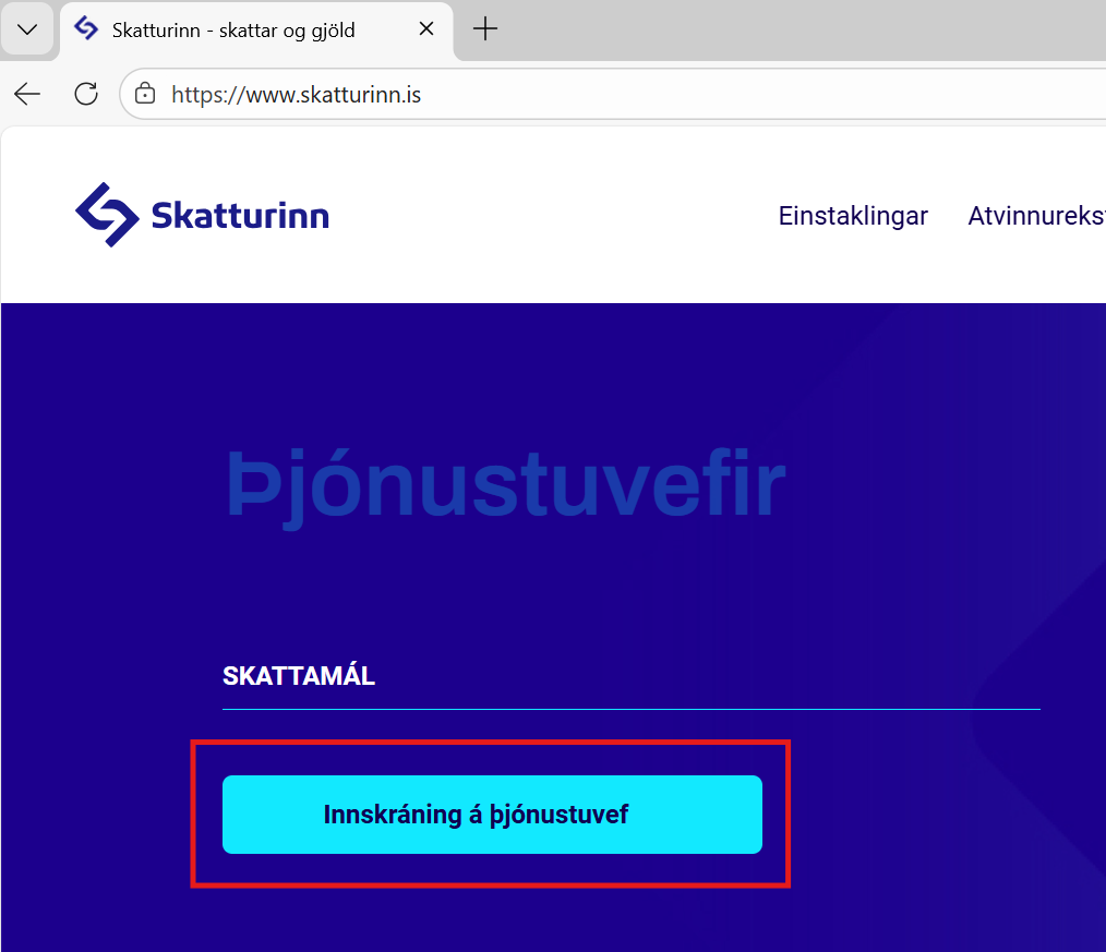 Byrjaðu á því að skrá þig inn á þjónustuvefinn með rafrænum skilríkjum með