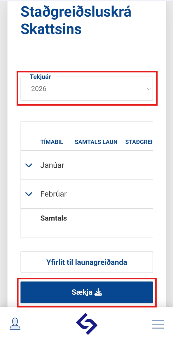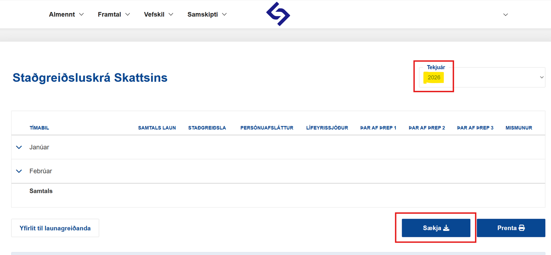 Staðgreiðsluskrá RSK er hægt að nálgast í gegnum þjónustuvef www.rsk.is