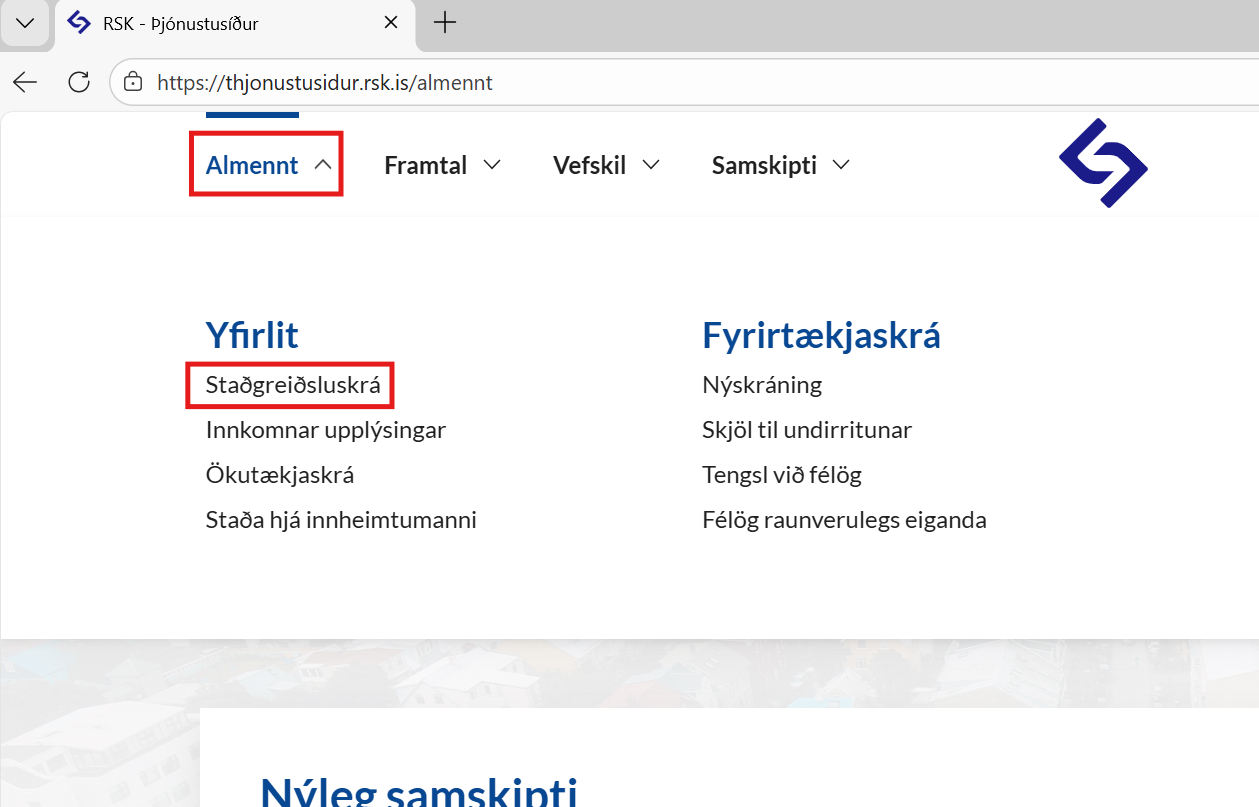 Undir Almennt veljið Staðgreiðsluskrá RSK