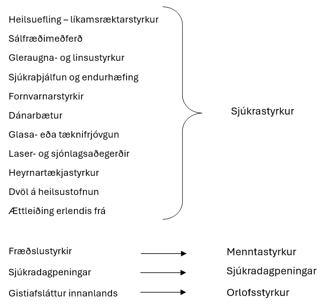 Yfirlit yfir styrki og hvaða umsókn þeir tilheyra má sjá á hér.