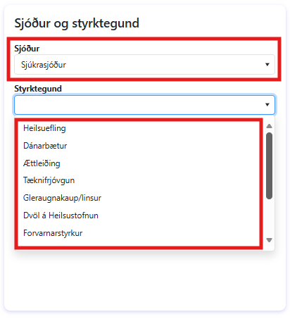 Sjóður er valinn og sá styrkur sem verið er að sækja um.